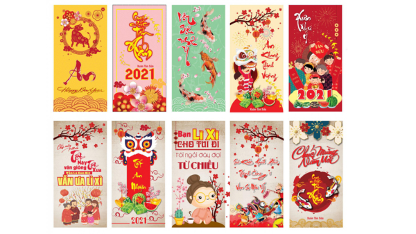 - Cán mờ hoặc cán bóng: giúp bao lì xì trông chuyên nghiệp và bền hơn.