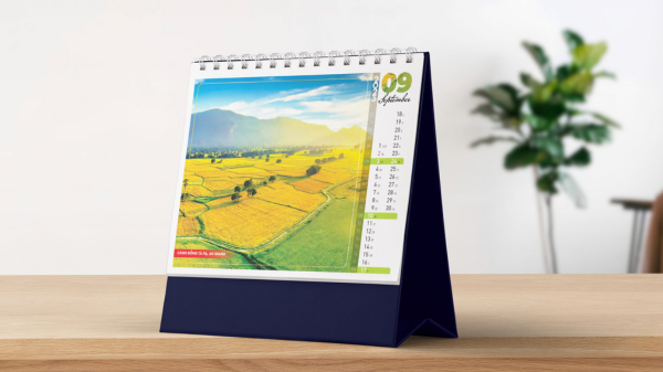 Kích thước 15x24cm hoặc 16x24cm dạng chữ A/M tiết kiệm không gian bàn làm việc hẹp, khung đỡ carton/mica đứng vững không ngã, dễ lật giở và mang theo. Thiết kế tinh tế với cán màng bóng/mờ, tùy chỉnh logo ép nhũ giúp lịch trở thành quà tặng Tết ý nghĩa, thể hiện sự quan tâm chu đáo cho đồng nghiệp, đối tác.